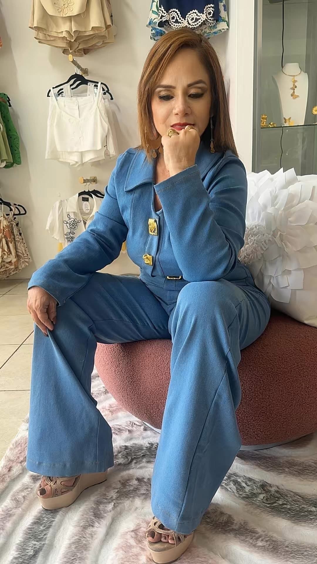 Denim set and gold buttons